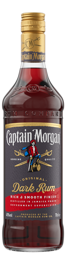 Captain Morgan Dark Rum ist ein geheimer Blend aus feinsten Rums der Karibik und exotischen Gewürzen, für das ganz besondere Geschmackserlebnis. Captain Morgan Dark Rum hat alle Aromen, die man sich wünscht: Toffee, kräftiges Karamell, süßer, brauner Zucker und reife Bananen. Genieße seinen vollmundigen Geschmack in einem mit Eis gefülltem Glas zusammen mit Cola, oder vielleicht mit Ginger Ale für den feurigen Captain Dark & Ginger. Nur für die besten Freunde sollte man diesen dunklen Rum gönnen, damit sich alle gemeinsam an diesem kräftigen, köstlichen Geschmack erfreuen dürfen.