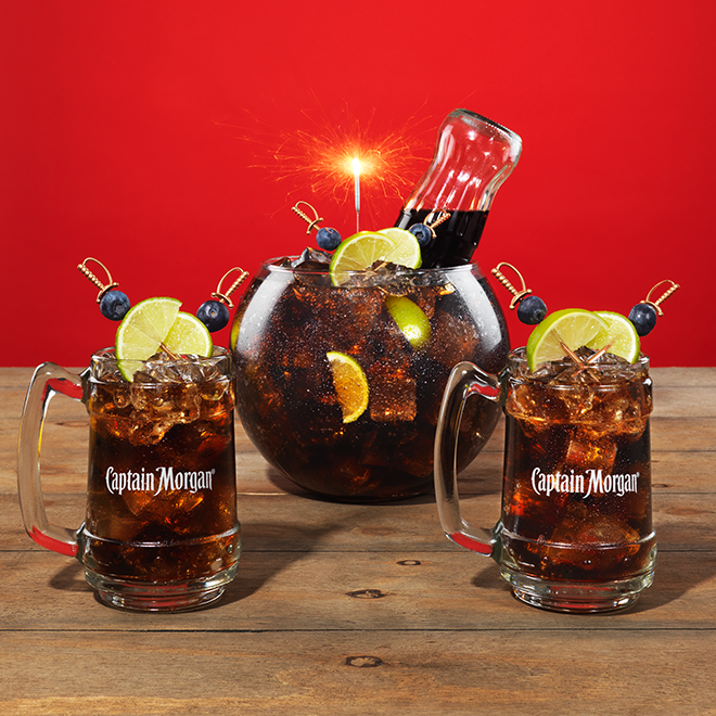 Une combinaison classique de rhum Captain Morgan et cola, arrosée d’un trait de lime.